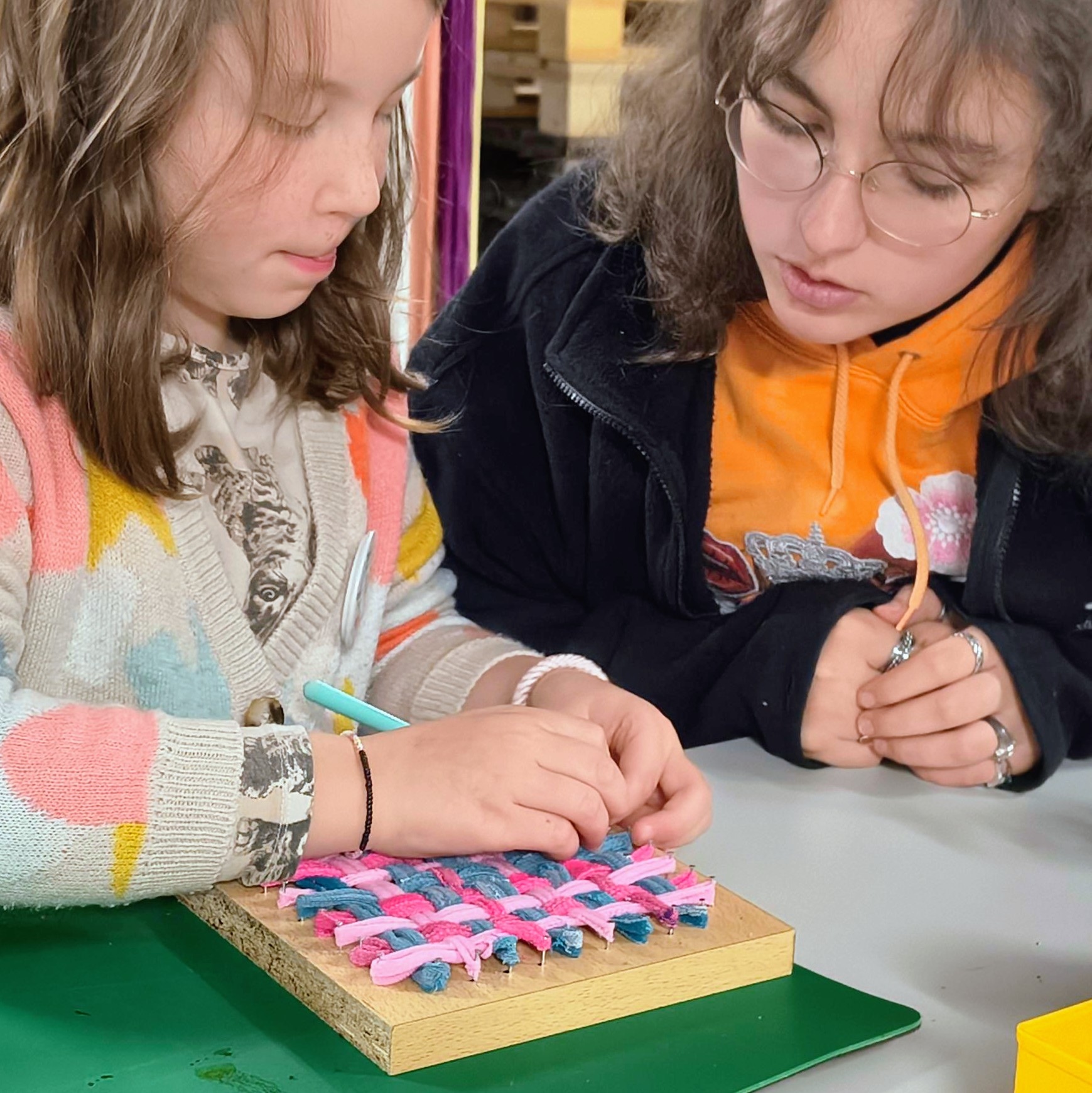 Alles was dazu gebraucht wird, haben wir im Museum: Web-Bretter, Nähnadeln, Wolle zum Vernähen, Socken, Knöpfe, Häkelnadeln, Scheren…